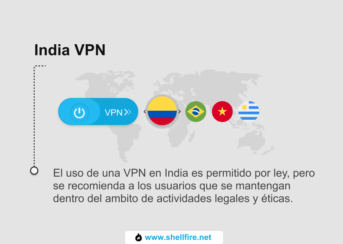 Sí, el uso de VPN en India es completamente legal. Sin embargo, es crucial tener en cuenta: aunque una VPN pueda ocultar tus acciones, las actividades prohibidas siguen siendo ilegales, con VPN o sin ella.